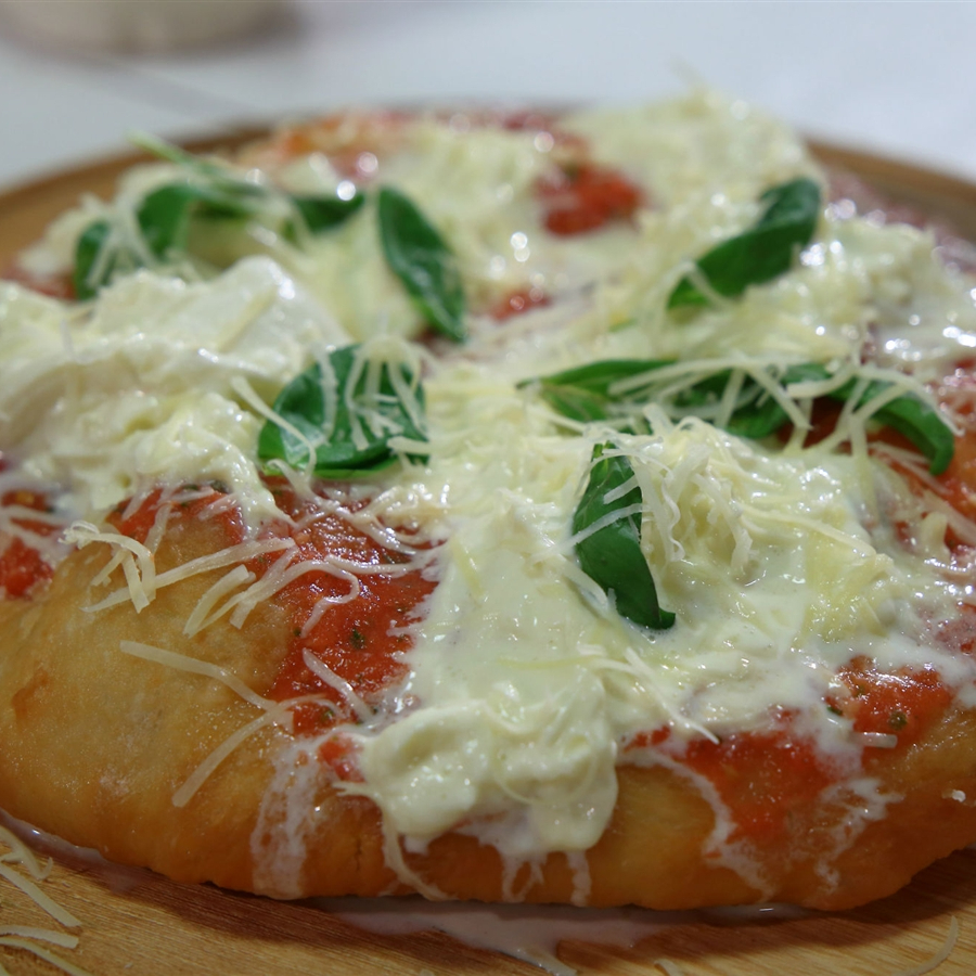 Pizza frita con dos salsas